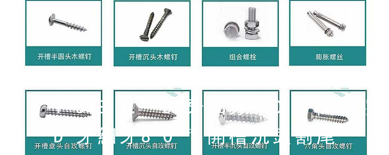 (鐵板牙自攻螺絲) B-2: Plastic Tapping Screw. (塑膠用,自攻螺絲) C: Wooden Screw : 木工螺絲 D: Drywall Screw :水泥墻螺絲 E: Self Drilling Screws鉆尾螺絲(不銹鋼鉆尾螺絲,復合材料鉆尾螺絲) F:膨脹螺絲,四片膨脹螺絲又